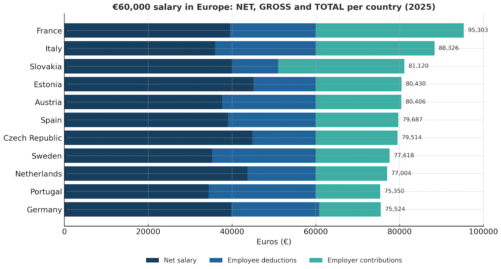 In France it costs an employer €95,300 in order to pay a gross salary of €60,000. The employee takes home €39,000. The burden of the state is simply huge.