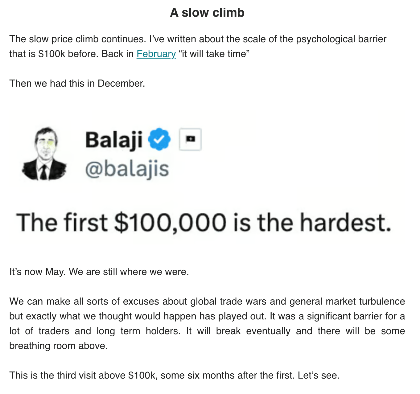Bitcoin dipped below $100k this week. If anything can be said for this visit it's that the day has finally arrived when $100k is frustrating and disappointing.