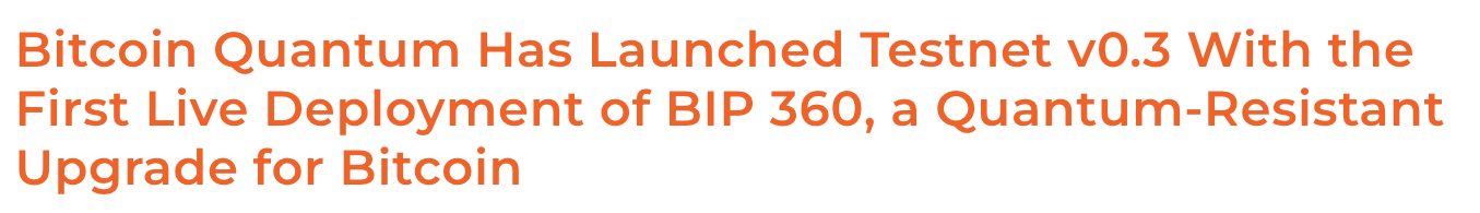 The first Testnet of the Quantum-Resistant signatures is live. It is exactly that, a test, but there is significant participation from miners and BIP360 is getting traction which is good. I doubt it is the final solution to this challenge but certainly the logical pathway is clear.