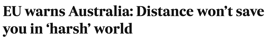Specifically though, it wasnât the EU. It was the EU President Ursula von der Leyen. Celebrating the trade deal with Australia she decided to ruin it by making veiled threats about the security of her new trade partner.