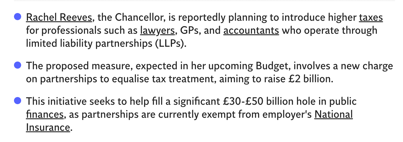 One month now until one of the most important UK budgets in peace time history. The issues are significant with a £30 billion gap between receipts and spending (1% of GDP). Most of the go-to fillers have already been raided. National insurance is up for everyone already, taxes are as high as they can go without receipts dropping off and all billionaires have successfully been chased away to the UAE.